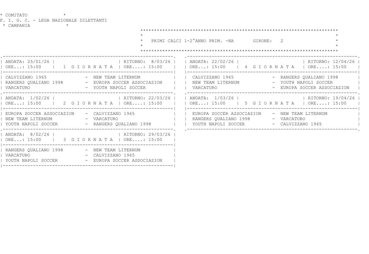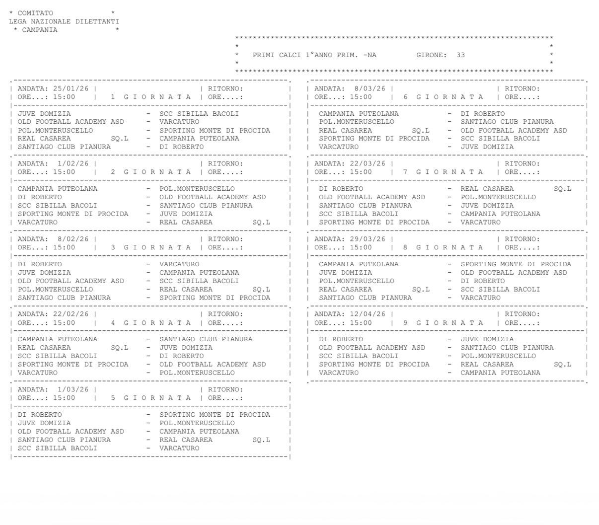 Benvenuti nella sezione dedicata al calendario delle partite di ASD Varcaturo Calcio. Qui troverete tutte le informazioni aggiornate per seguire la nostra squadra e non perdere un singolo appuntamento. Il vostro tifo è la nostra forza!